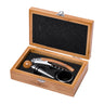 Sada na víno z bambusu s vývrtkou, kroužkem a zátkou v bambusové krabičce.